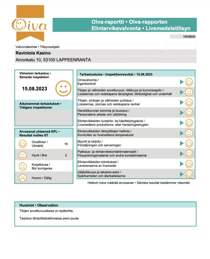 Kasinon buffét-lounas sisältää maukkaan keiton, runsaan salaattipöydän, leipää ja ruokajuomat.
